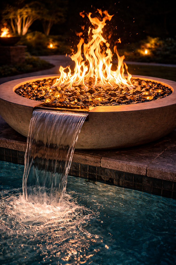 Fire features add warmth, atmosphere, and structure to outdoor spaces. This collection brings together outdoor fire elements designed for patios, backyards, and poolside settings. Fire pits, fire tables, fire bowls, and fire burner systems serve as both heat sources and visual anchors in modern outdoor design. Whether used for gathering or ambiance, these outdoor fire installations help extend the use of outdoor living spaces well into the evening.